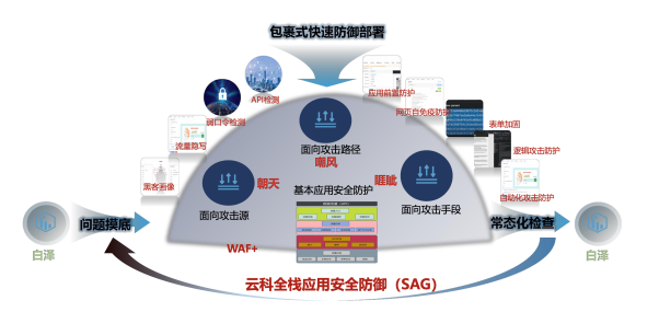 web应用安全检测系统、全域应用风险防护系统作为云科安信防御测创新产品,基于“软件定义安全”的理念,通过“智能化、自动化、模块化”的脚本对抗可编程防御架构,以及API 接口对接方式,利用自动化编排技术,将安全功能抽离形成可定制的防御模板,并通过平台的弹性扩展能力,实现对应用全生命周期的自动化持续监控与响应。
