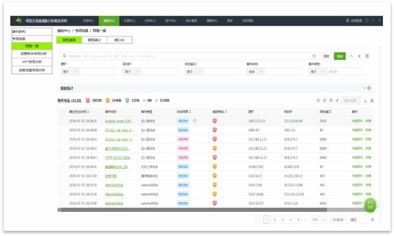 被动流量分析系统,高精度交叉验证两高一弱风险问题:绿盟全流量威胁分响应应系统基于被动流量数据分析,基于网络访问行为信息识别高危端口服务、高危漏洞、存活弱口令信息,有效提高两高一弱风险发现精确度。