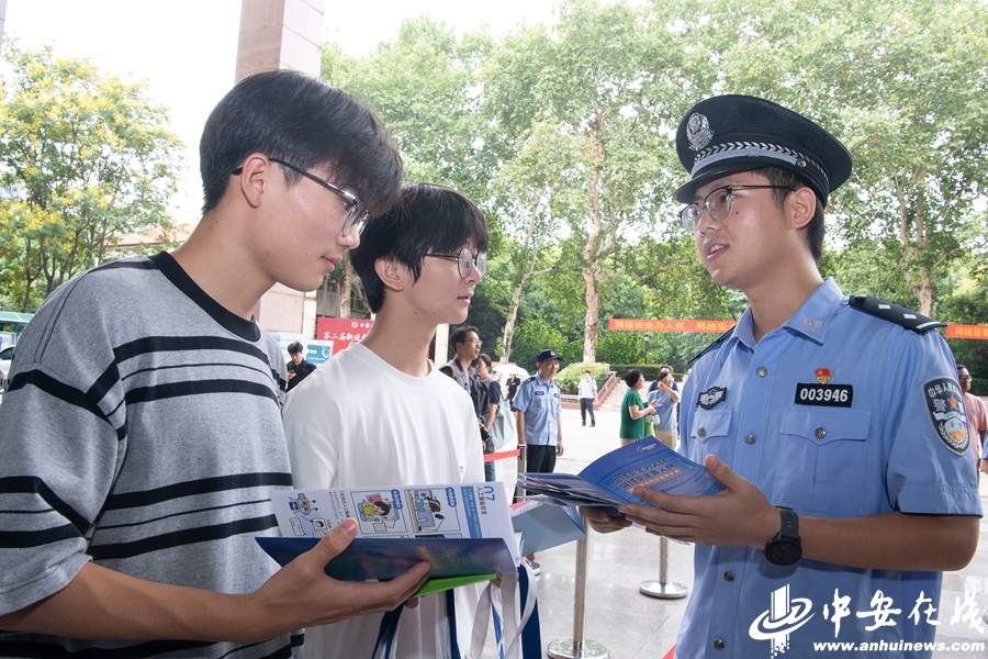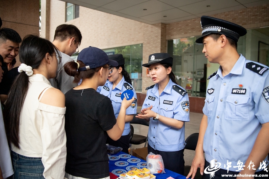 现场,在校师生纷纷到互动区进行网络安全知识答题闯关,赢取网络安全宣传相关文创产品。与此同时,合肥市公安机关还组织了110、治安、刑警、禁毒、交警、反恐、出入境等警种,围绕防范电信网络诈骗、防范毒品侵害、交通安全、打击网络谣言等主题与师生互动交流,提供户政、出入境等理咨询服务。